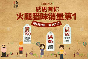 入了12月的江南,空氣中總會(huì)飄散著一股似近似遠(yuǎn)的肉香味,勾人魂魄到直咽口水。窗檐下懸掛的香腸臘肉有一種“年之將近”的即視感,因?yàn)槟蔷褪强痰焦亲永锏哪晡栋?。就算時(shí)代再變化,“小雪腌菜,大雪腌肉”的習(xí)慣依然被懂得生活的人代代傳承著。2014年的金字天貓旗艦店雙12來了,為您準(zhǔn)備的好臘味上新,十二道臘味年前抄底價(jià)。春運(yùn)車票已經(jīng)可以買了,臘味也同樣:回家過春節(jié),你準(zhǔn)備好了沒有?
